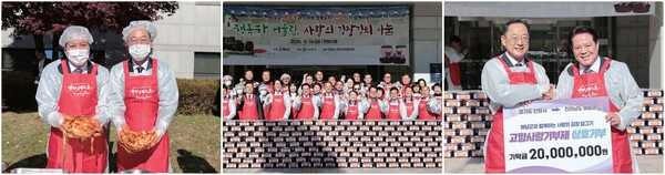 해남군은 14일 안양시청에서 사랑 의 김장김치 나눔 행사를 갖고, 김장 담기 행사와 함께 청정 해남 배추로 담근 명품 김장김치를 경기도 안양 시에 전달했다.