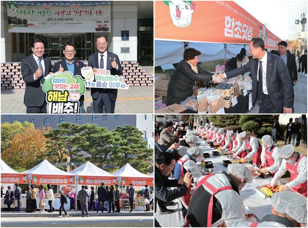 이날 행사에서는 명현관 해남군수 와 최대호 안양시장을 비롯해 박지 원 국회의원, 민병덕 국회의원, 안양 시 주민자치협의회원들이 참여해 직접 김치를 담그는 뜻깊은 시간을 가졌다. 해남군은 김장철을 맞아 수 도권 주민들에게 해남 배추의 우수 성을 알리고, K-푸드의 대표주자인 김치의 세계화와 김장 문화를 확산 하기 위해 마련됐다.
